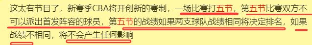 但是,让人没有料到的是,紧接着又传出,CBA联赛很有可能还有下一步的大动作——已经有不少人在爆料了,说CBA联赛还有进一步的创新,将在正常的四节比赛之后,额外再增加一节比赛。也就是说,每一场比赛总共要打五节比赛。这种玩法大家听说过吗?见过吗?是不是觉得还挺新鲜的?